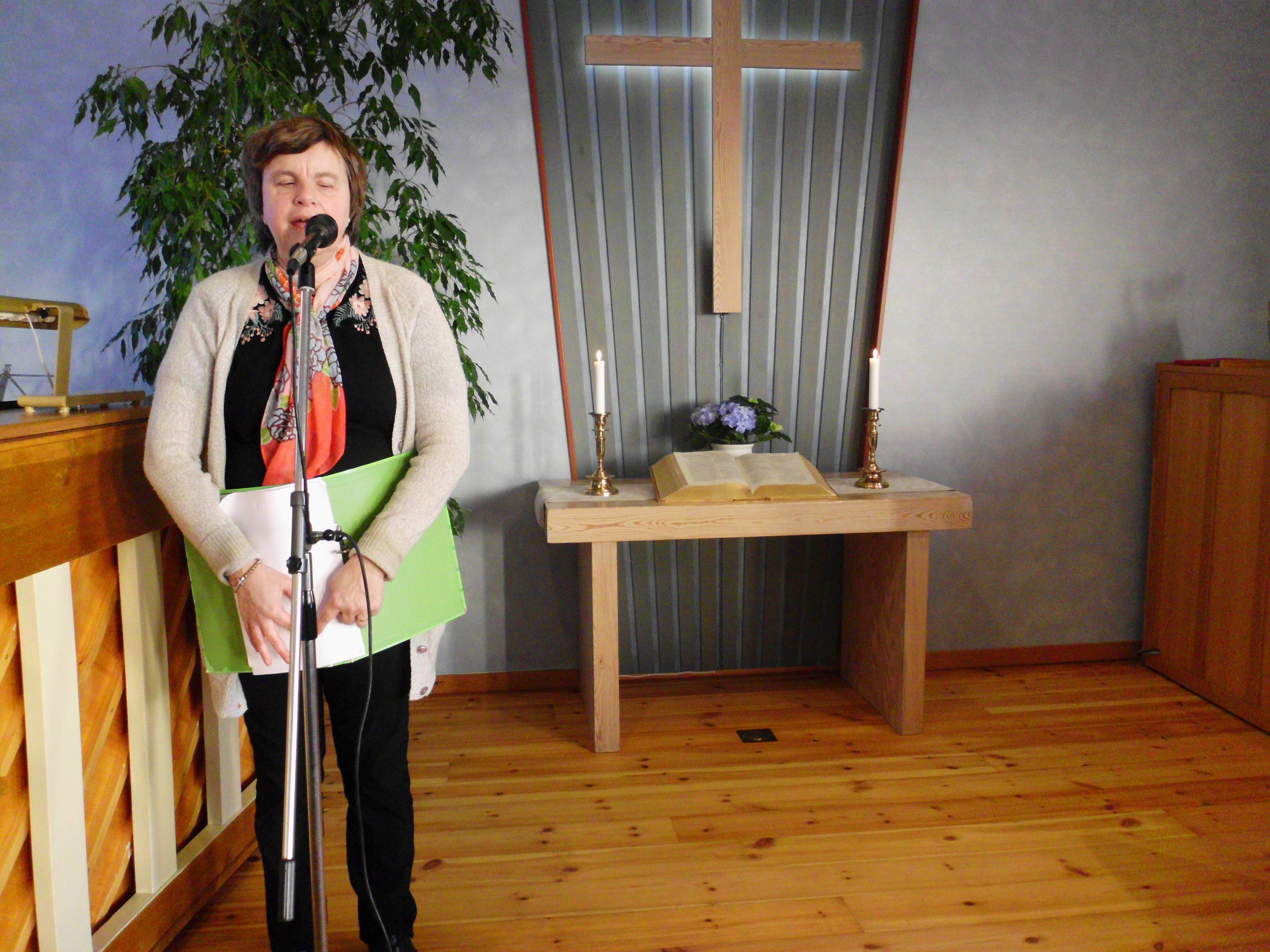 Equmeniakyrkan Nossebro, foto här sjunger jag och Ulla ackompanjerar på piano, 21 januari 2018